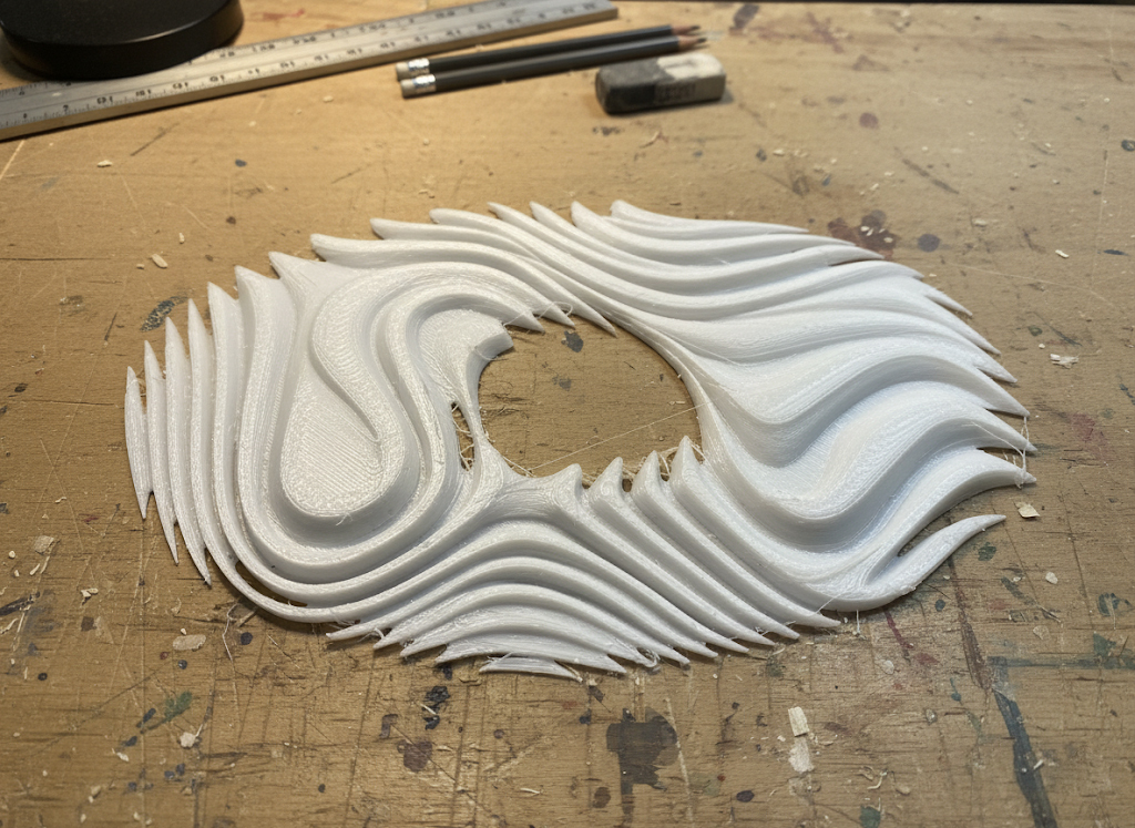 Each sculpture is individually crafted – merging digital design precision with the expressive nature of real wood.